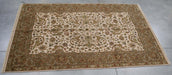 One-of-a-Kind Hand-Knotted Area Rug. 6x9 India Japiur Traditional Ivory Brown Wool Rectangular Rug