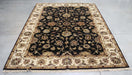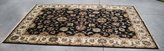 6x9 India Japiur Traditional Black Ivory Wool Rectangular Rug