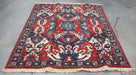 One-of-a-Kind Hand-Knotted Area Rug. 6x7 Turkey Turkish Tribal Red Blue Wool Rectangular Rug
