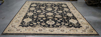 9x12 Pakistan Oushak Black Ivory Wool Rectangular Rug
