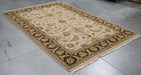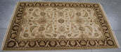 One-of-a-Kind Hand-Knotted Area Rug. 6x9 India Jaipur Ivory Brown Wool Rectangular Rug