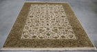 6x9 India Jaipur Ivory Brown Wool Rectangular Rug