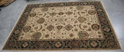 9x12 India Oushak Ivory Black Wool Rectangular Rug