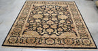 One-of-a-Kind Hand-Knotted Area Rug. 8x9 India Jaipur Black Gold Wool Rectangular Rug