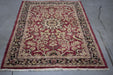 One-of-a-Kind Hand-Knotted Area Rug. 4x6 Pakistan Oushak Red Black Wool Rectangular Rug