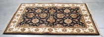 One-of-a-Kind Hand-Knotted Area Rug. 4x6 India Jaipur Black Ivory Wool Rectangular Rug