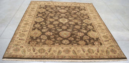 8x10 India Oushak Brown Ivory Wool Rectangular Rug
