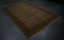 8x10 India Oushak Brown Gold Wool Rectangular Rug