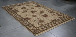 6x9 India Oushak Ivory Brown Wool Rectangular Rug