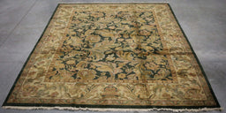 9x12 India Jaipur Green Gold Wool Rectangular Rug
