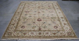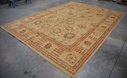 9x12 Pakistan Oushak Gold Ivory Wool Rectangular Rug