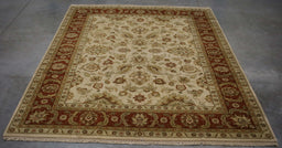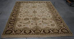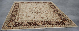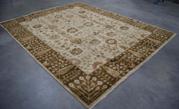 8x9 India Oushak Brown Ivory Wool Rectangular Rug