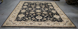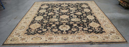 9x12 Pakistan Oushak Black Ivory Wool Rectangular Rug