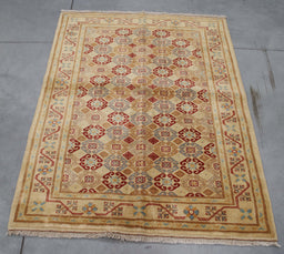 4x3 Pakistan Geometric Kazak Red Ivory Wool Rectangular Rug