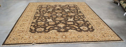 8x9 Pakistan Oushak Brown Ivory Wool Rectangular Rug