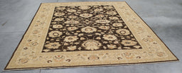 8x10 Pakistan Oushak Black Brown Wool Rectangular Rug