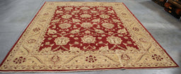 9x11 Pakistan Oushak Red Burgundy Gold Wool Rectangular Rug