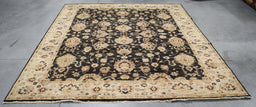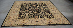 8x9 Pakistan Oushak Black Ivory Wool Rectangular Rug