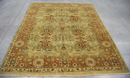 7x10 India Jaipur Gold Green Wool Rectangular Rug