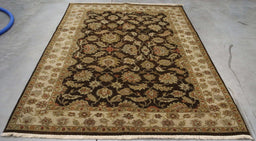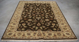 6x8 India Jaipur Brown Ivory Wool Rectangular Rug