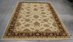 6x9 India Oushak Ivory Brown Wool Rectangular Rug