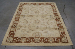 4x6 Pakistan Oushak Ivory Brown Wool Rectangular Rug