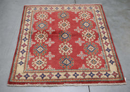 Ahgly30% OffFlash SaleIn stockOne-of-a-Kind Hand-Knotted Area Rug. 4x3 Pakistan Geometric Kazak Red Ivory Wool Rectangular Rug EXACT SIZE: 4 x 3.1