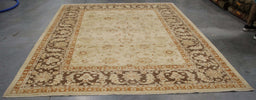 9x12 Pakistan Oushak Ivory Brown Wool Rectangular Rug