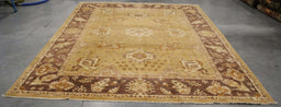 9x11 Pakistan Oushak Gold Brown Wool Rectangular Rug