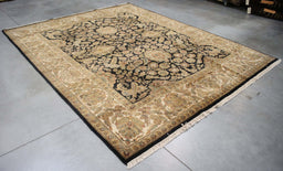 9x14 India Jaipur Black Gold Wool Rectangular Rug