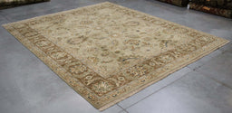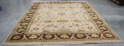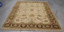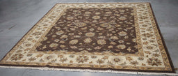 8x10 India Oushak Brown Ivory Wool Rectangular Rug