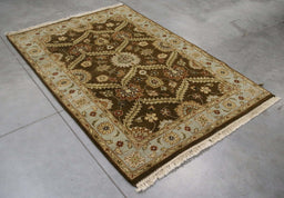 4x5 India Jaipur Brown Blue Wool Rectangular Rug