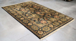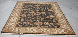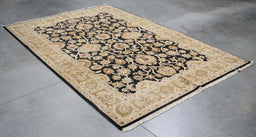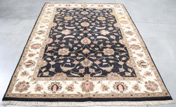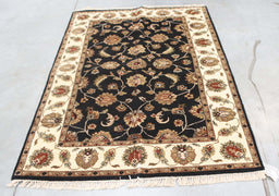 6x9 India Japiur Traditional Black Ivory Wool Rectangular Rug