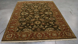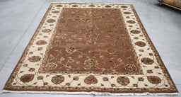 6x9 India Japiur Traditional Brown Terrocotta Wool Rectangular Rug