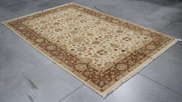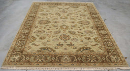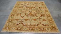 6x8 Pakistan Oushak Ivory Gold Wool Rectangular Rug