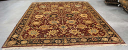 9x13 India Japiur Traditional Red Burgundy Black Wool Rectangular Rug