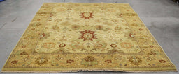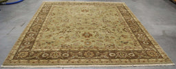 8x9 India Japiur Traditional Green Gold Wool Rectangular Rug