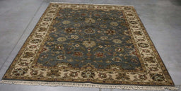 5x8 India Japiur Traditional Blue Ivory Wool Rectangular Rug