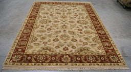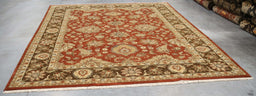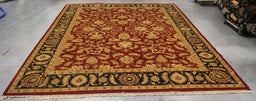 8x9 India Oushak Gold Red Wool Rectangular Rug