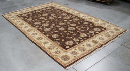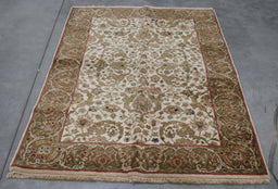 6x9 India Oushak Brown Ivory Wool Rectangular Rug
