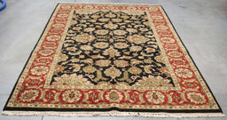 6x9 India Jaipur Black Red Wool Rectangular Rug