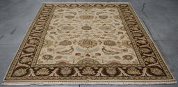 7x9 India Oushak Brown Ivory Wool Rectangular Rug