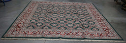 9x12 India Jaipur Green Red Wool Rectangular Rug