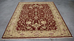 5x9 India Jaipur Red Burgundy Gold Wool Rectangular Rug