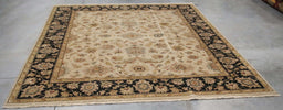 10x14 India Japiur Traditional Ivory Black Wool Rectangular Rug