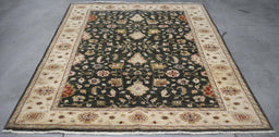 6x9 India Jaipur Black Green Wool Rectangular Rug