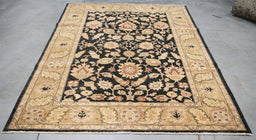 5x8 Pakistan Oushak Black Brown Wool Rectangular Rug