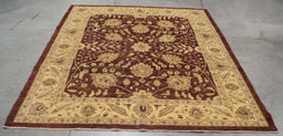 9x11 India Japiur Traditional Brown Ivory Wool Rectangular Rug