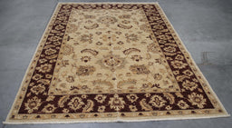5x9 Pakistan Oushak Ivory Brown Wool Rectangular Rug