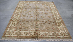 6x8 India Oushak Ivory Green Wool Rectangular Rug
